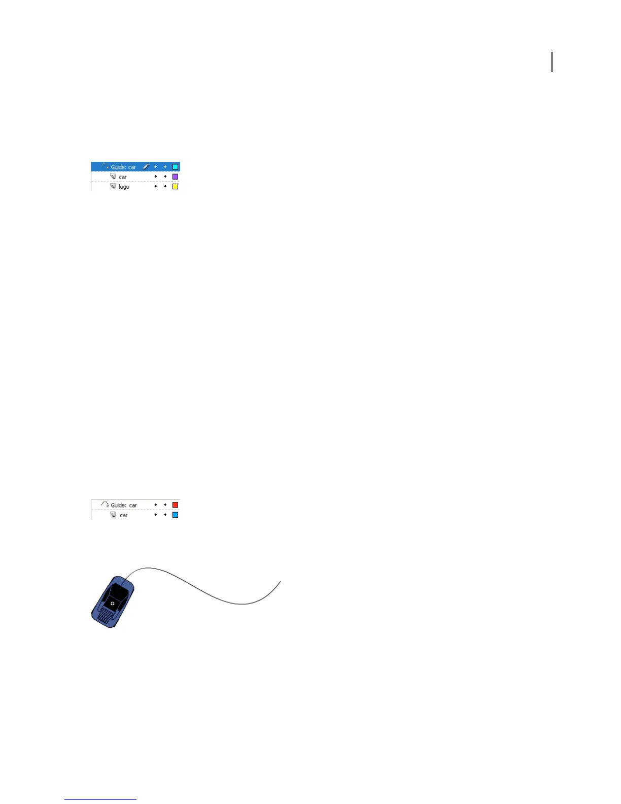 • Select the layer containing the animation, and select Insert > Timeline > Motion Guide.