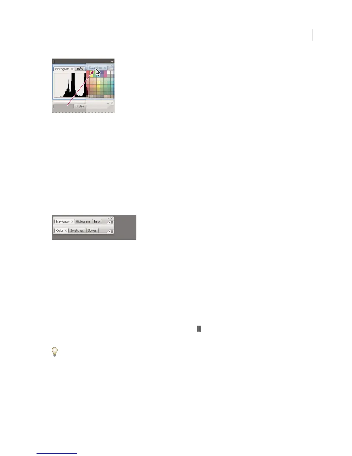 • To rearrange panels in a group, drag a panel’s tab to a new location in the group.