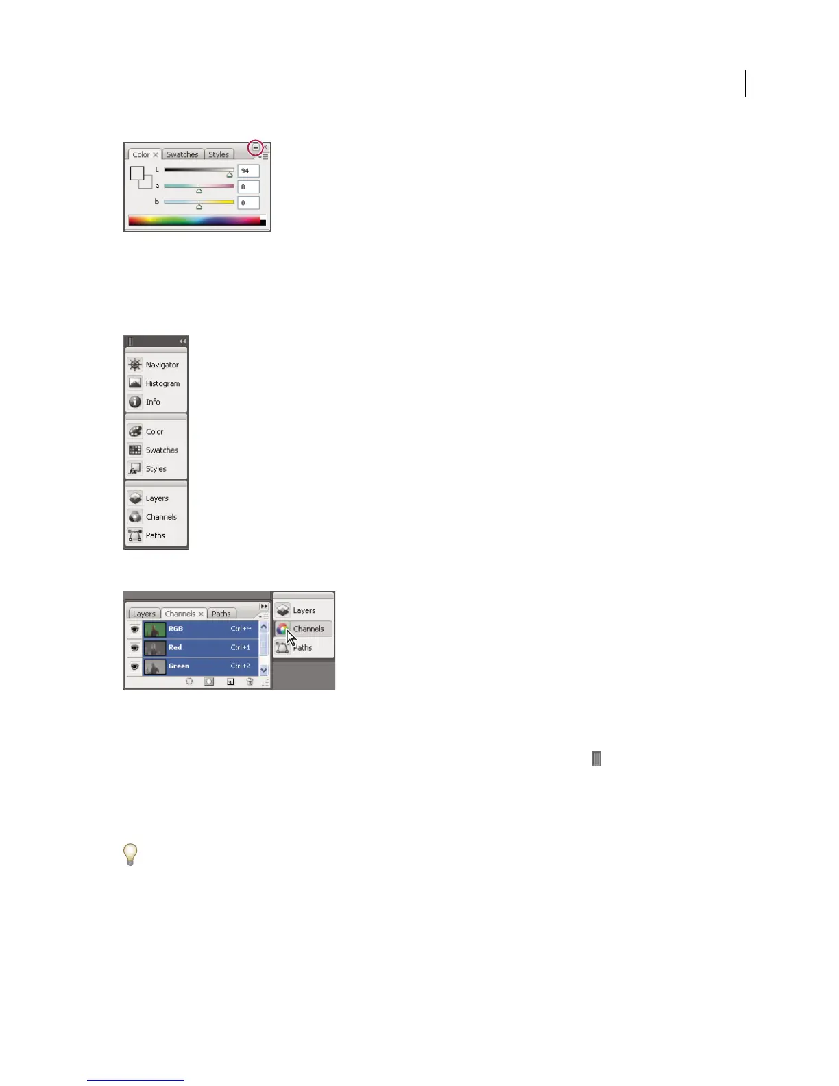 Collapse panels to icons to reduce clutter on the workspace. (In some cases, panels are collapsed to icons in the