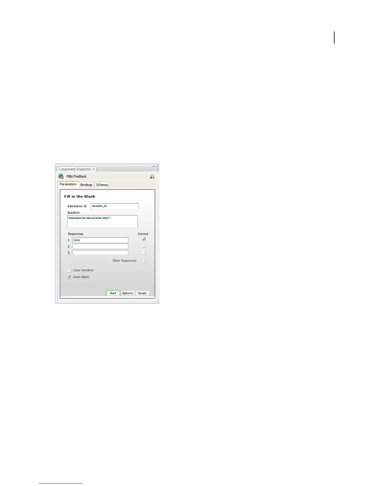 3 In the Component inspector, do one of the following to enter up to three possible correct answers:
