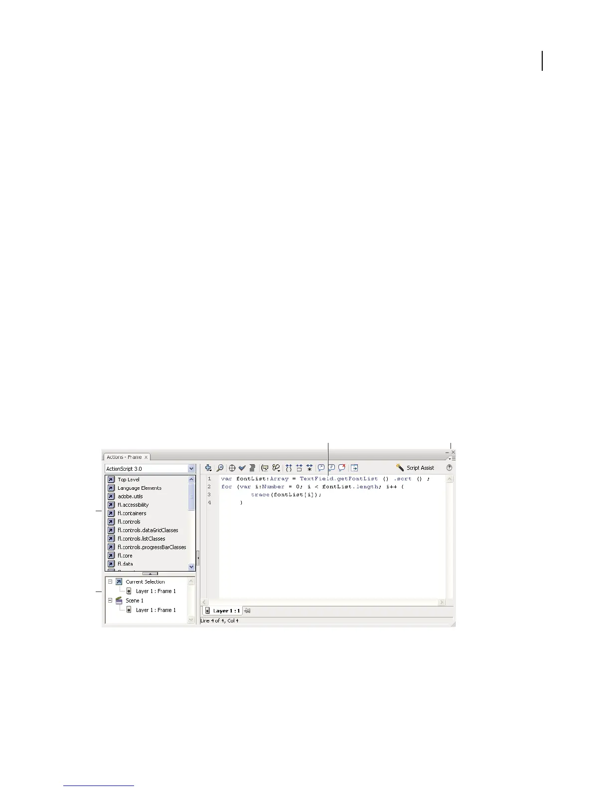 core ActionScript language elements, and Script Assist mode, in which you are prompted for the elements needed