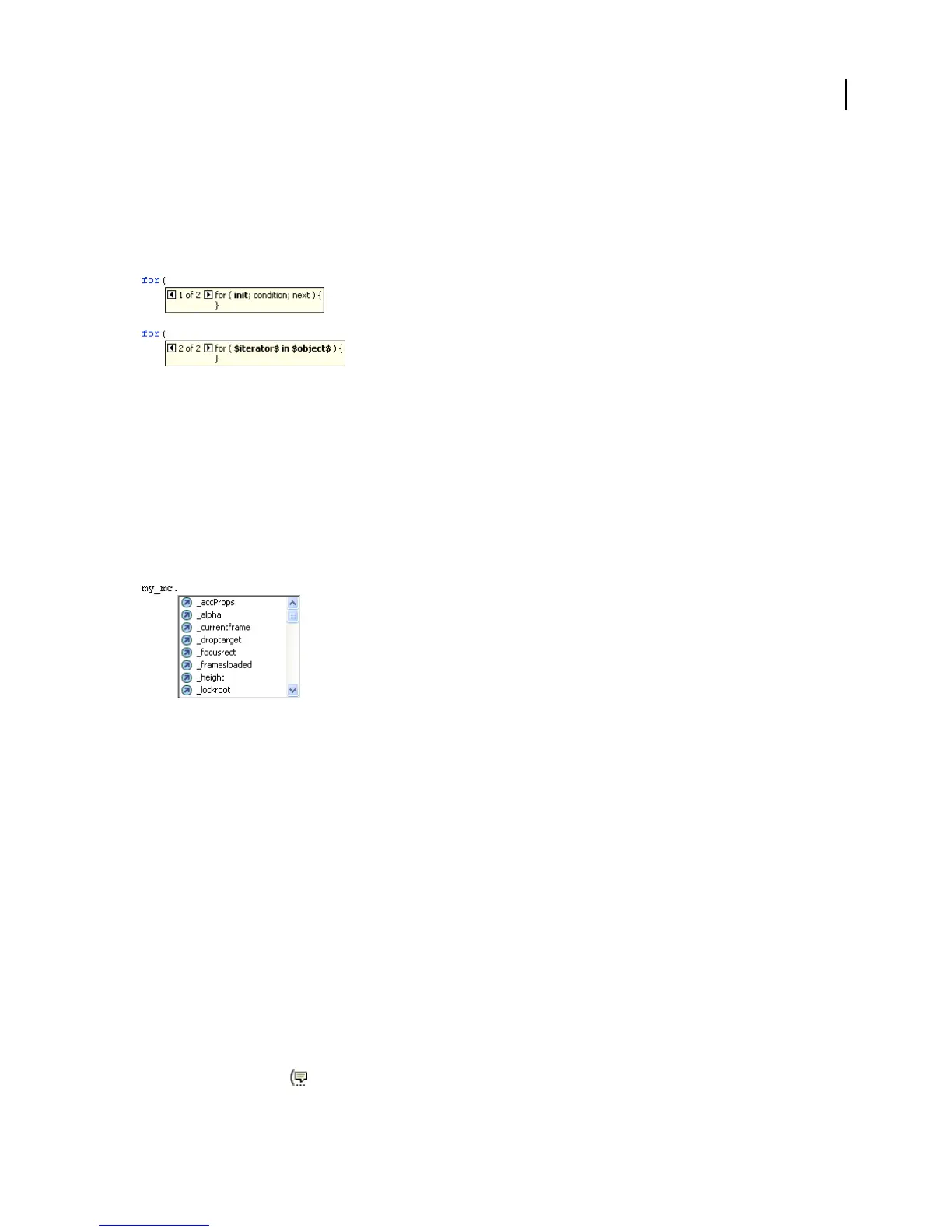 • Click Show Code Hint in the Actions panel or Script window toolbar.