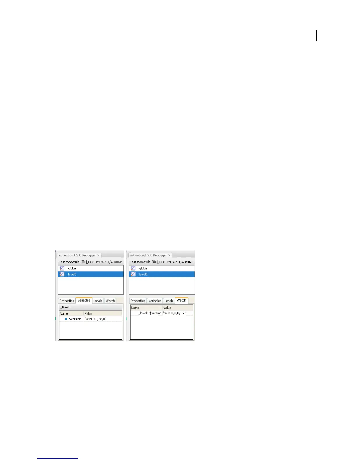 that is within the variable’s scope. All other variables appear while the SWF file is playing. If the Debugger can’t find