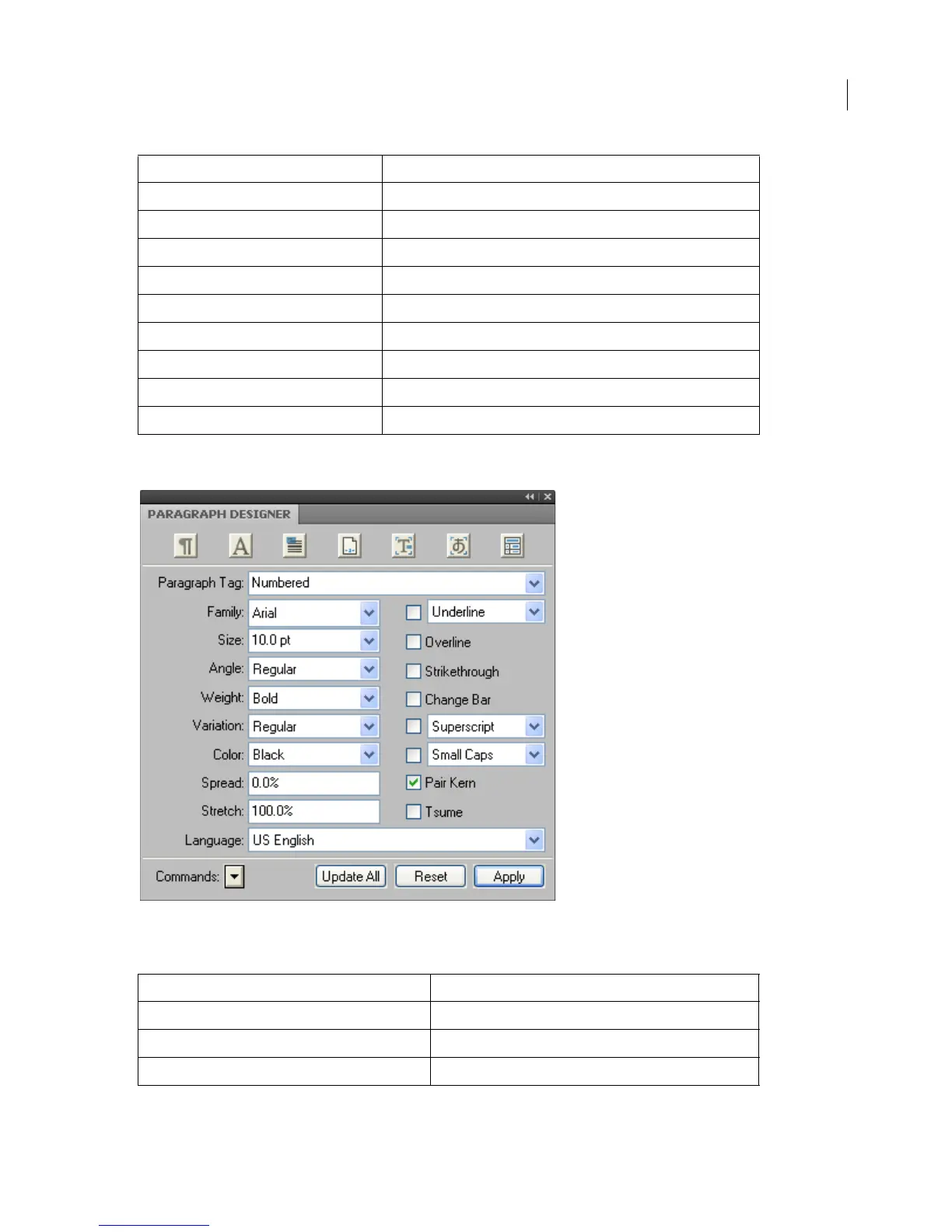 The Default Font properties are defined as follows in the Paragraph Designer.
