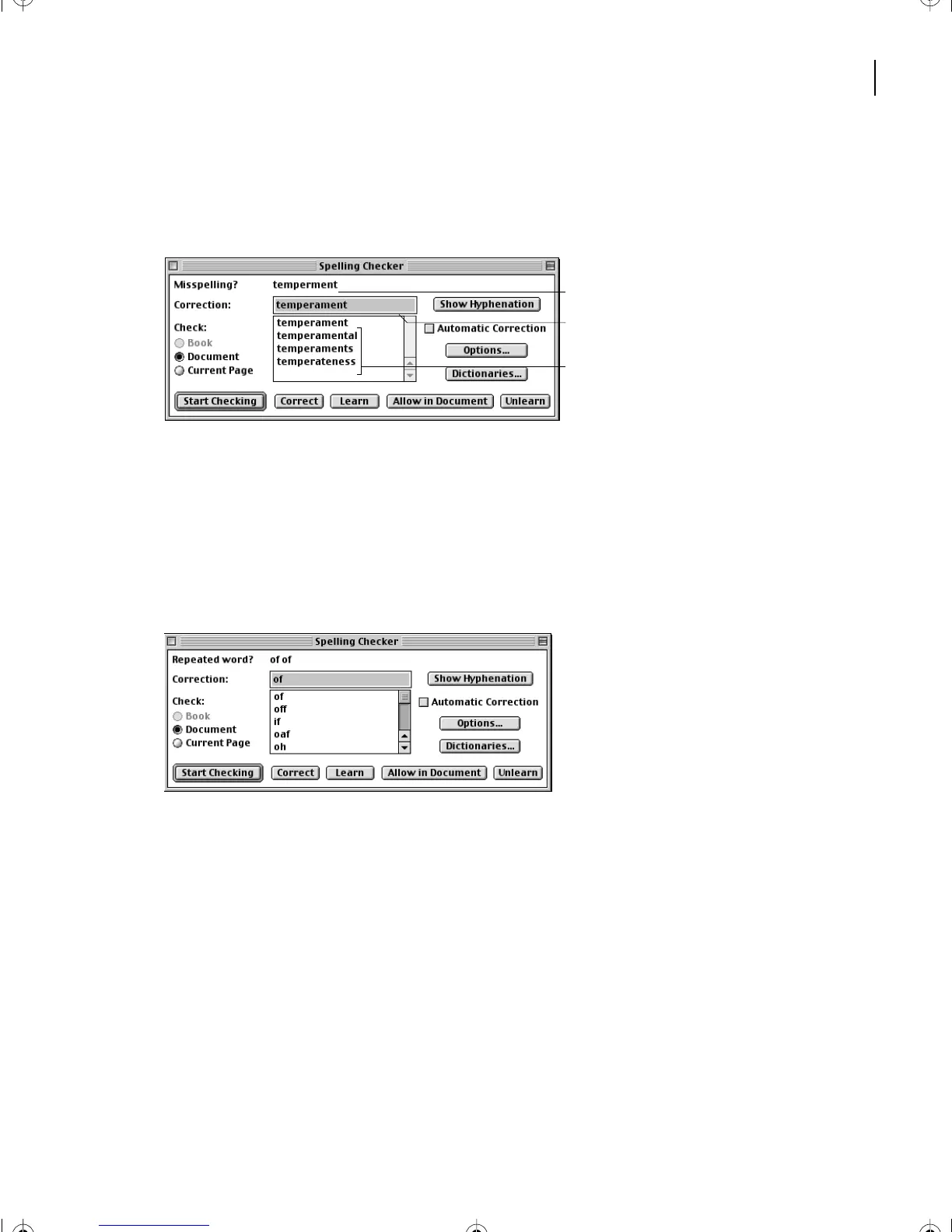 word temperment and suggests that it’s a misspelling. FrameMaker 7.0 recommends a