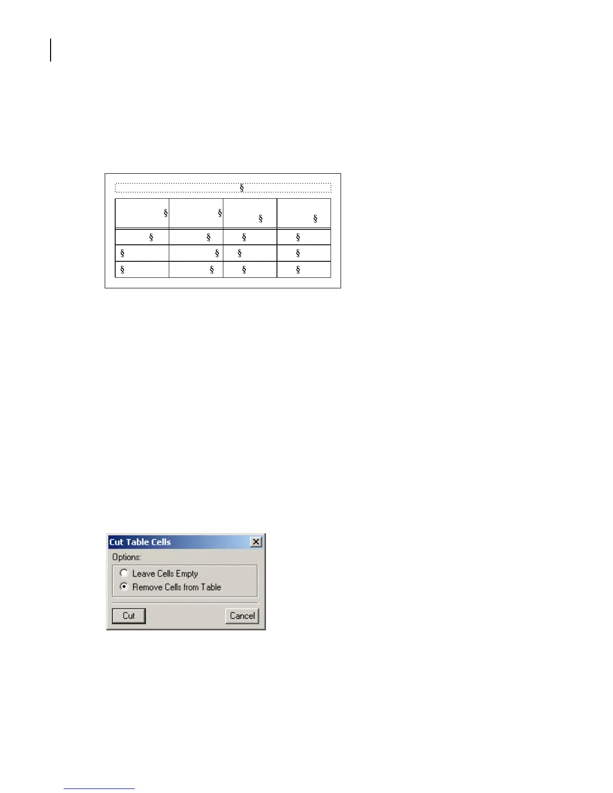 In the Cut Table Cells dialog box, select Remove Cells from Table and click Cut.