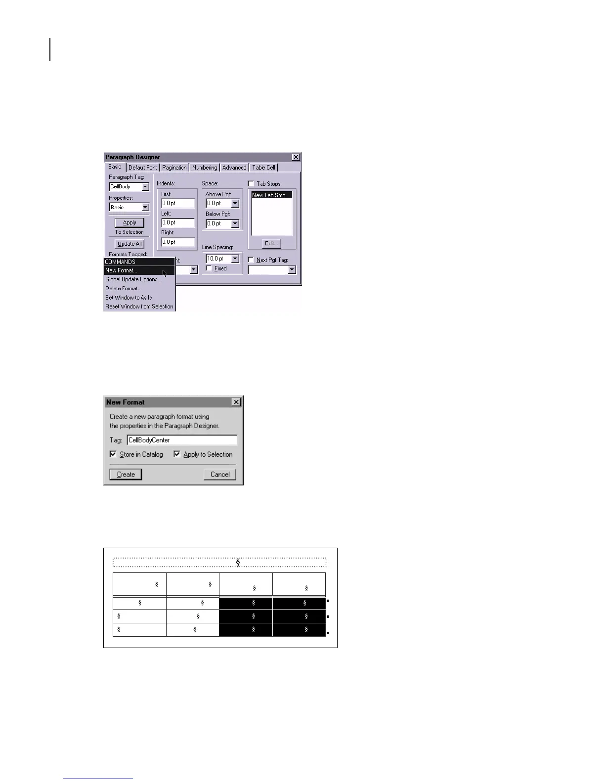 The current paragraph’s tag changes to CellBodyCenter, and the CellBodyCenter format