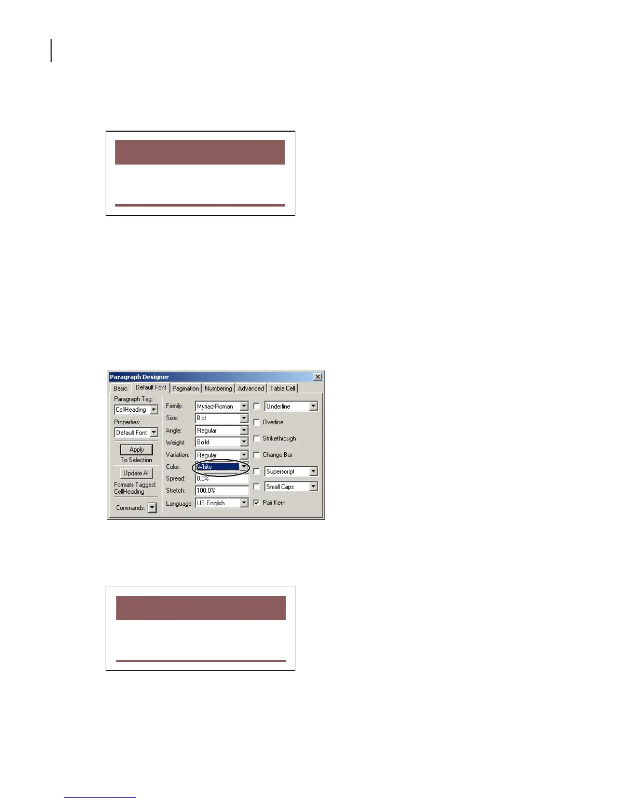 5 Click in any heading cell. Choose Format > Paragraphs > Designer.