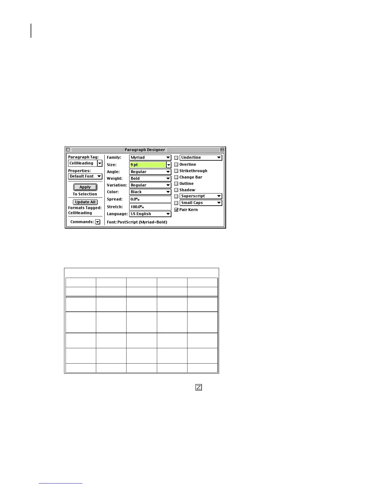 Next you’ll change the paragraph format of the table headings.