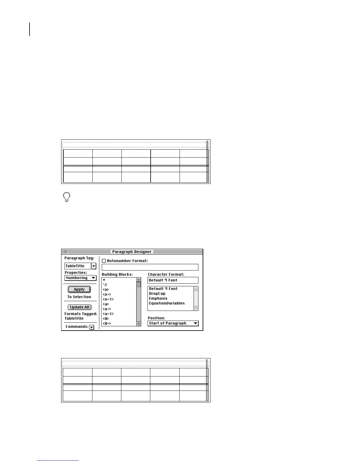 Yo u’ll change one more paragraph format—the table title. You’ll remove the autonumber,