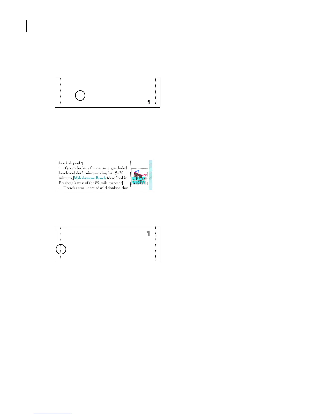 closer to the page’s edge, the graphic appears at the right side of the column. The frame’s