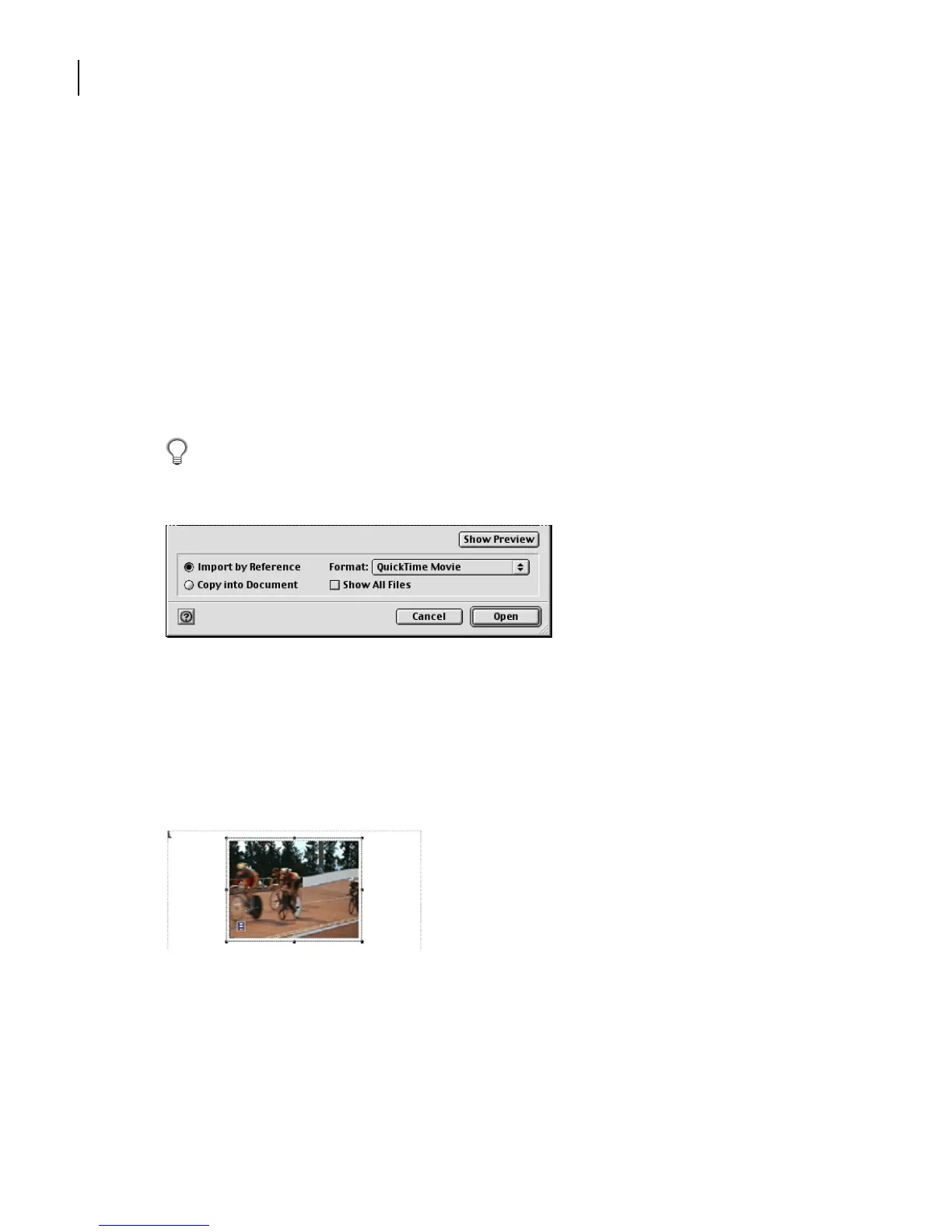 Here you’ll add a QuickTime movie (.mov) file to a document.