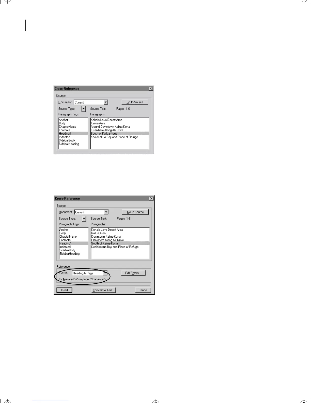 Next, you specify the format for the cross-reference, which you choose from the Format