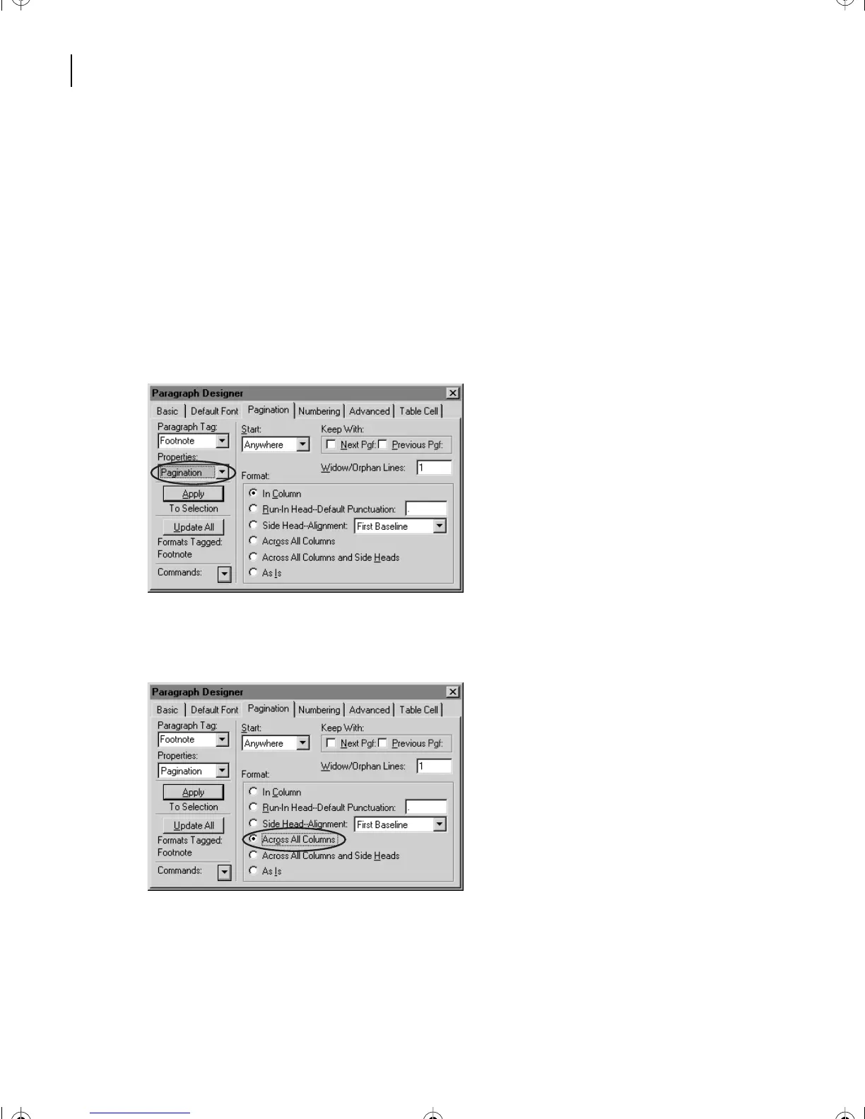 4 In the Format area, select Across All Columns. This will allow the footnotes to span the