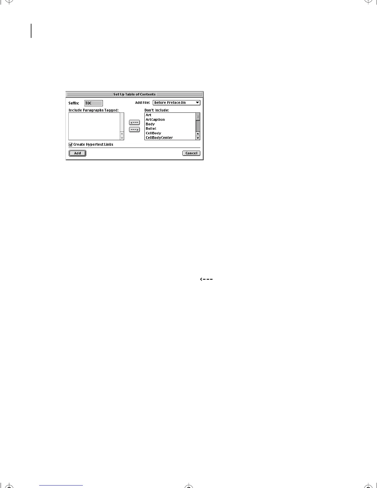 to include in it. FrameMaker 7.0 will look in the files of the book for any text that’s