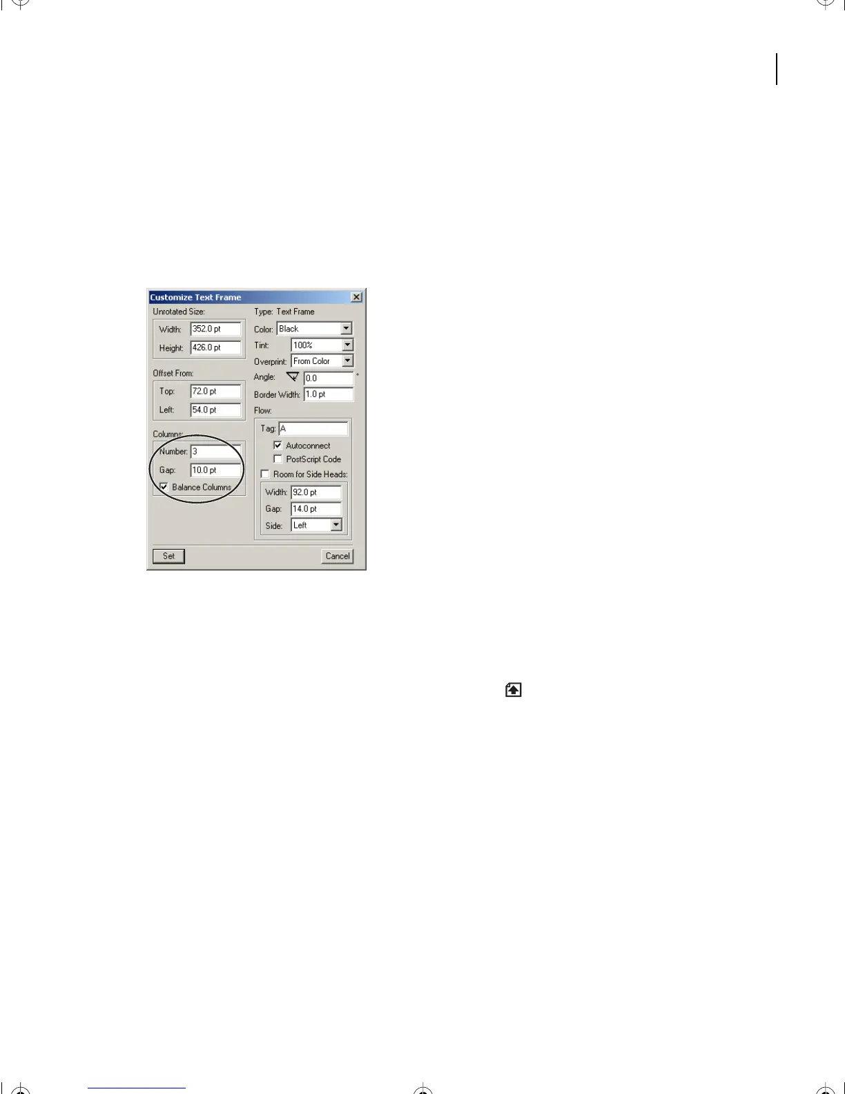 Click in the main text frame and choose Format > Customize Layout > Customize Text