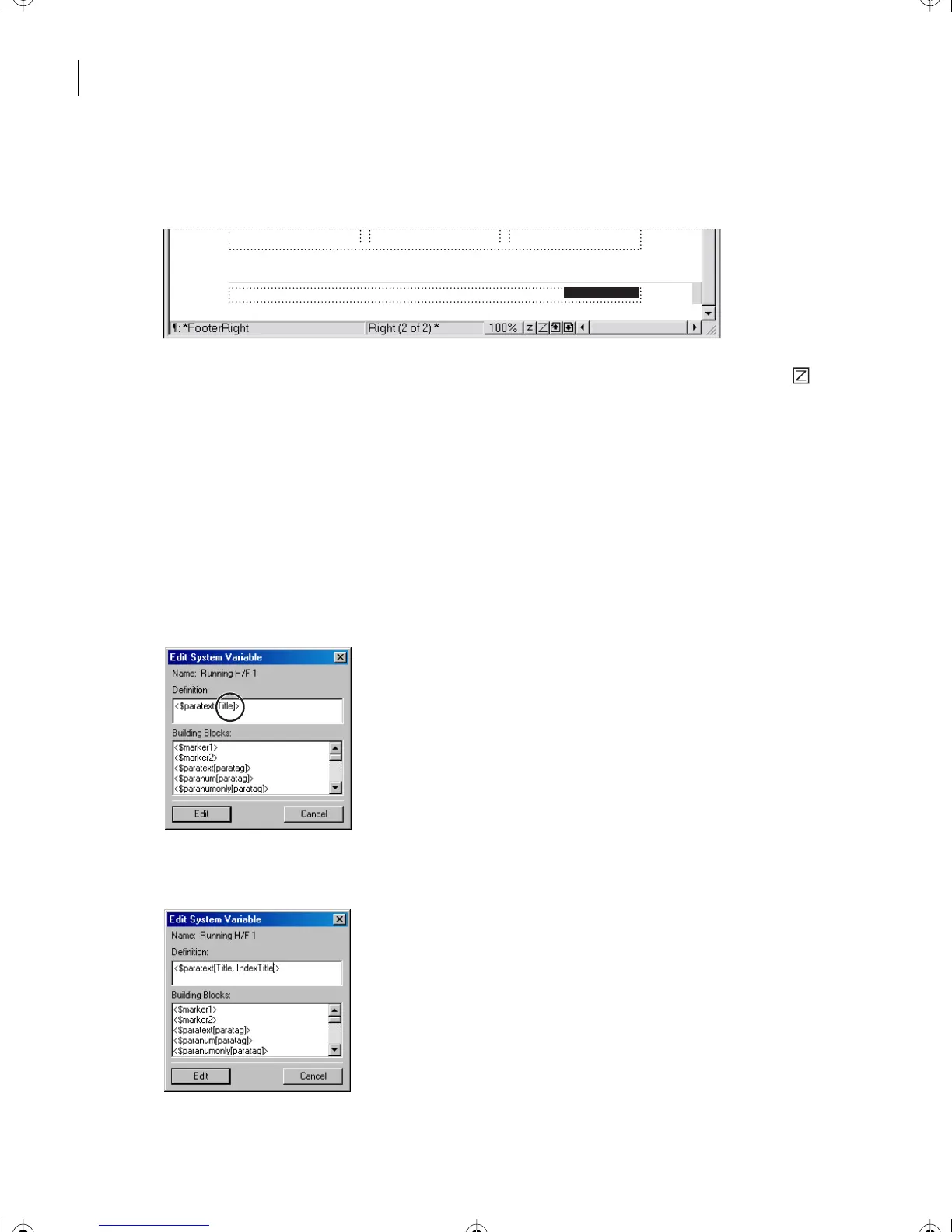 variable display the text of the chapter, preface, or table of contents title, depending on