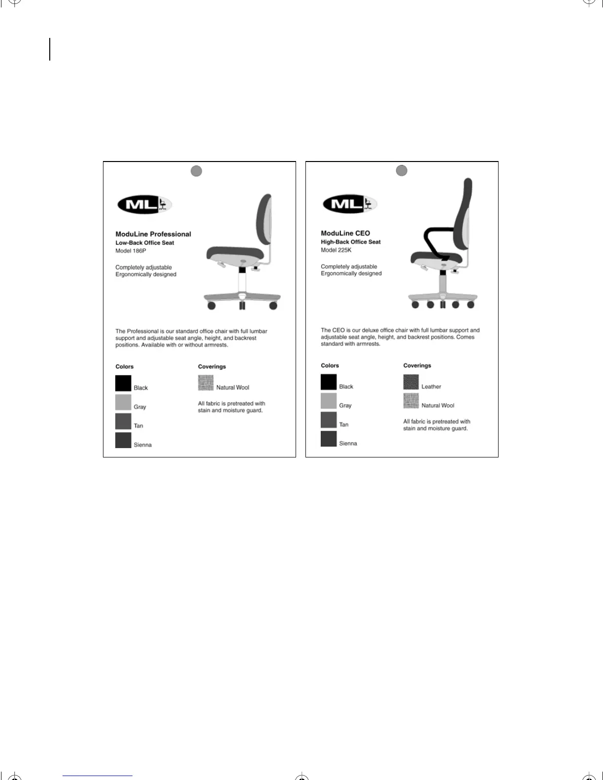 The text that is specific to the Professional chair appears underlined and in blue.
