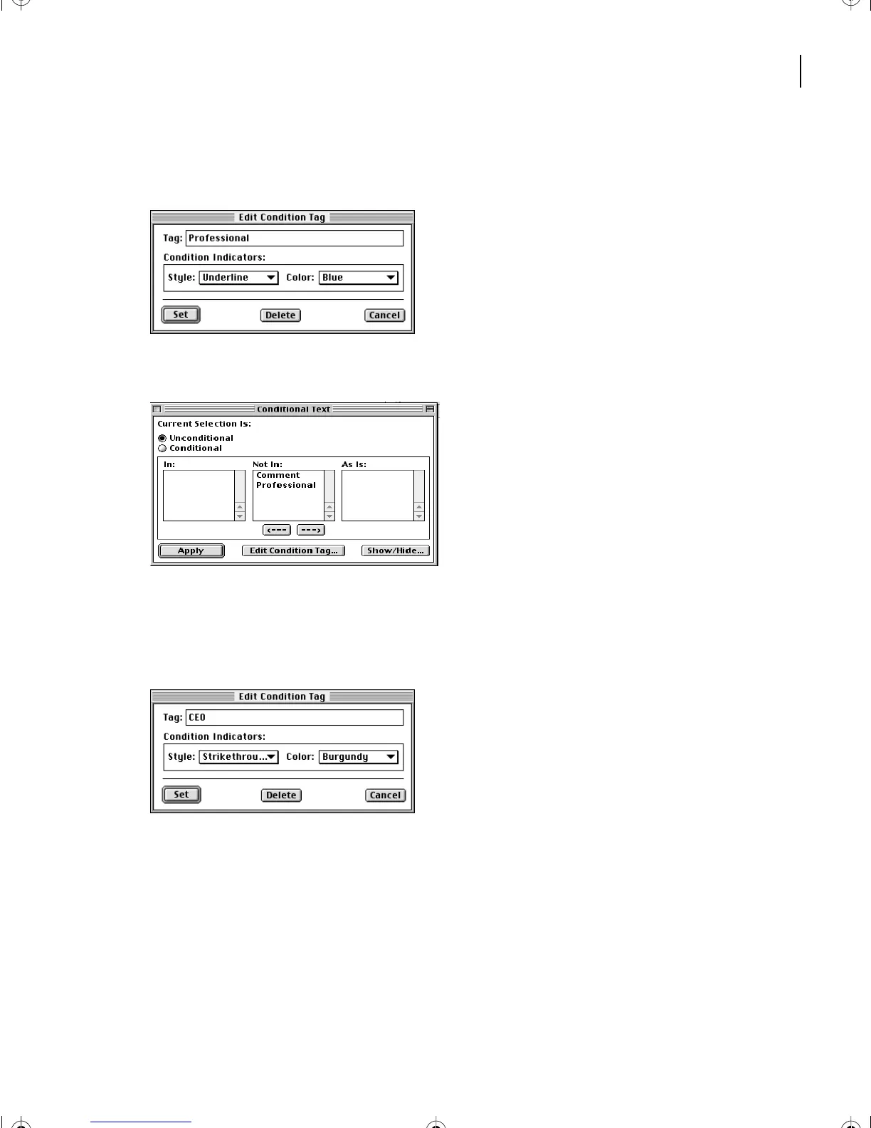 Click Delete. Now only two tags appear in the Conditional Text dialog box.