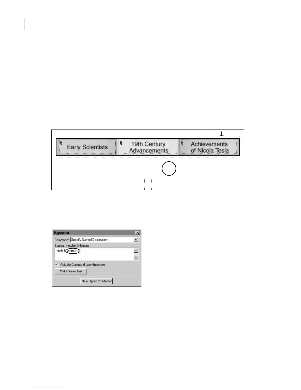 Now you’ll add hypertext markers to the text frames. The markers can be links to other