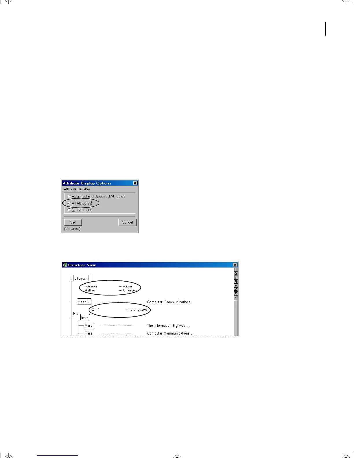 An element can contain several attributes, which are displayed in Structure View directly