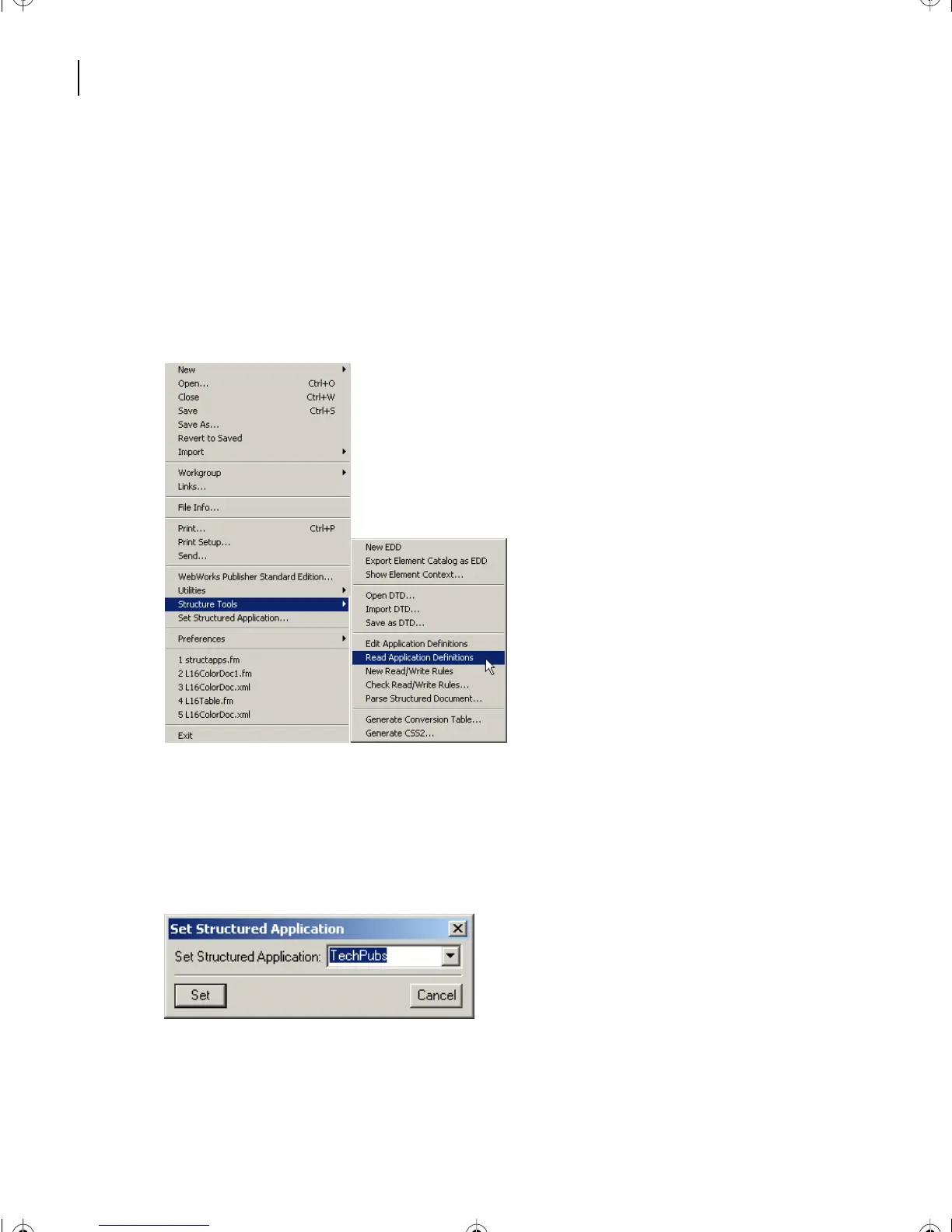 In the Set Structured Application box, select TechPubs from the pop-up menu, and