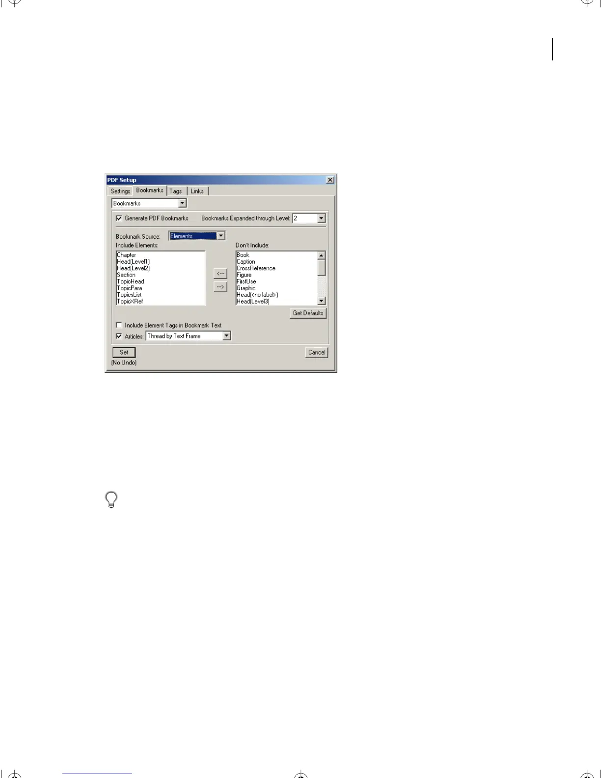 in Bookmark Text. Use this option to see the levels of bookmarks in a draft PDF file. Deselect