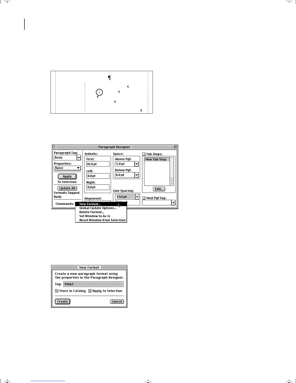 3 In the bottom-left corner of the Paragraph Designer, choose New Format from the