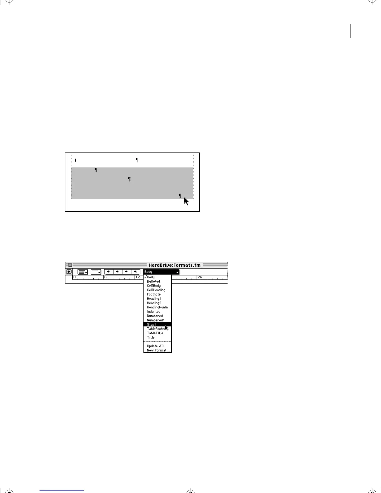 2 Choose Step1 from the Paragraph Formats pop-up menu in the formatting bar. This