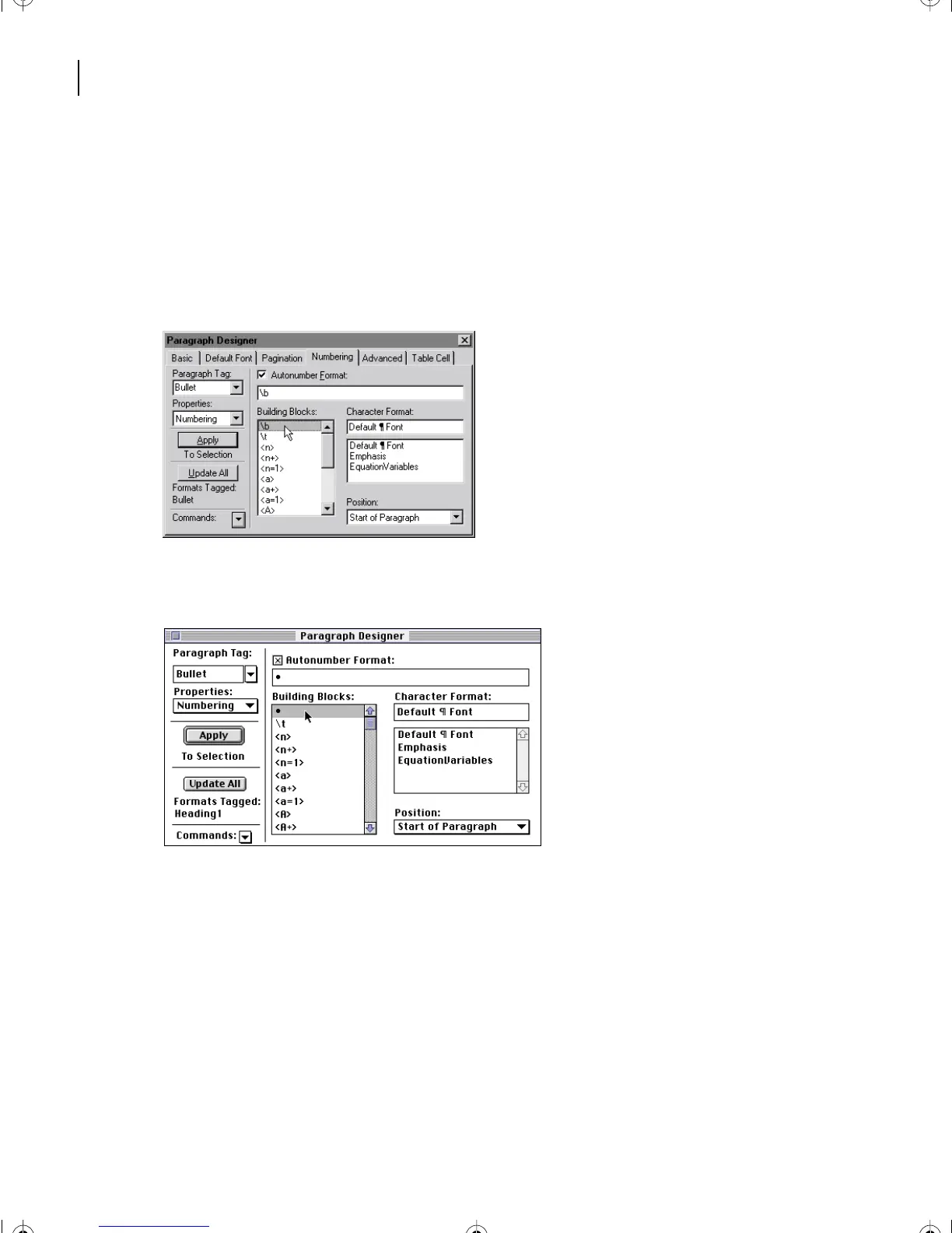 This building block inserts a round bullet symbol at the beginning of each Bullet