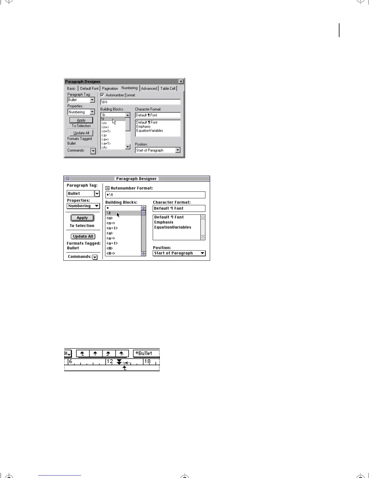 9 Select \t in the Building Blocks scroll list to insert a tab, and then click Update All.