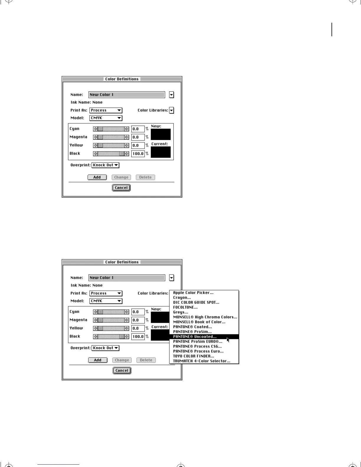 Uncoated from the Color Libraries pop-up menu.