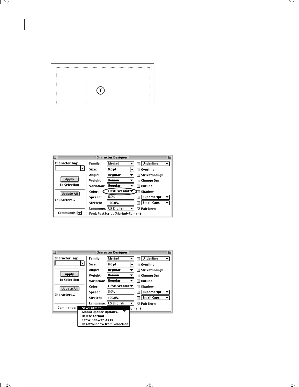 Character Designer works in the same way as the Paragraph Designer, but it contains only