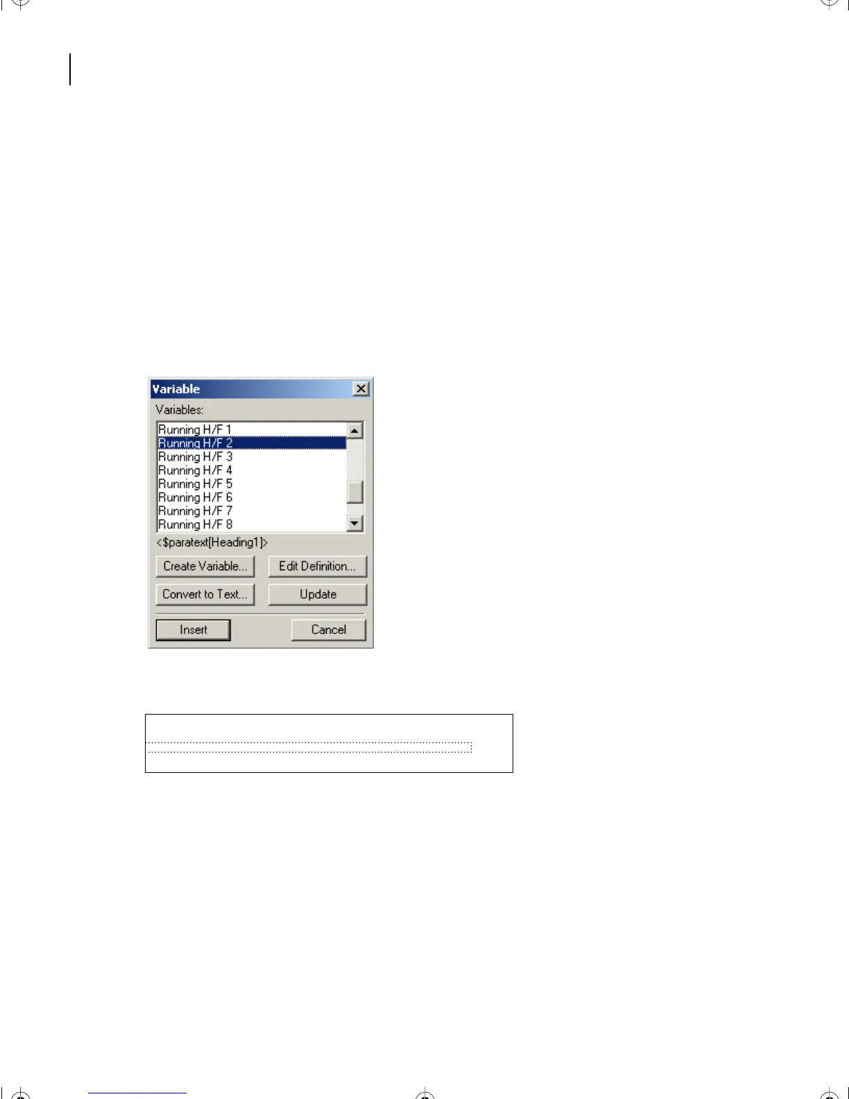Now you’ll add another running footer variable, to display the text of first-level headings.