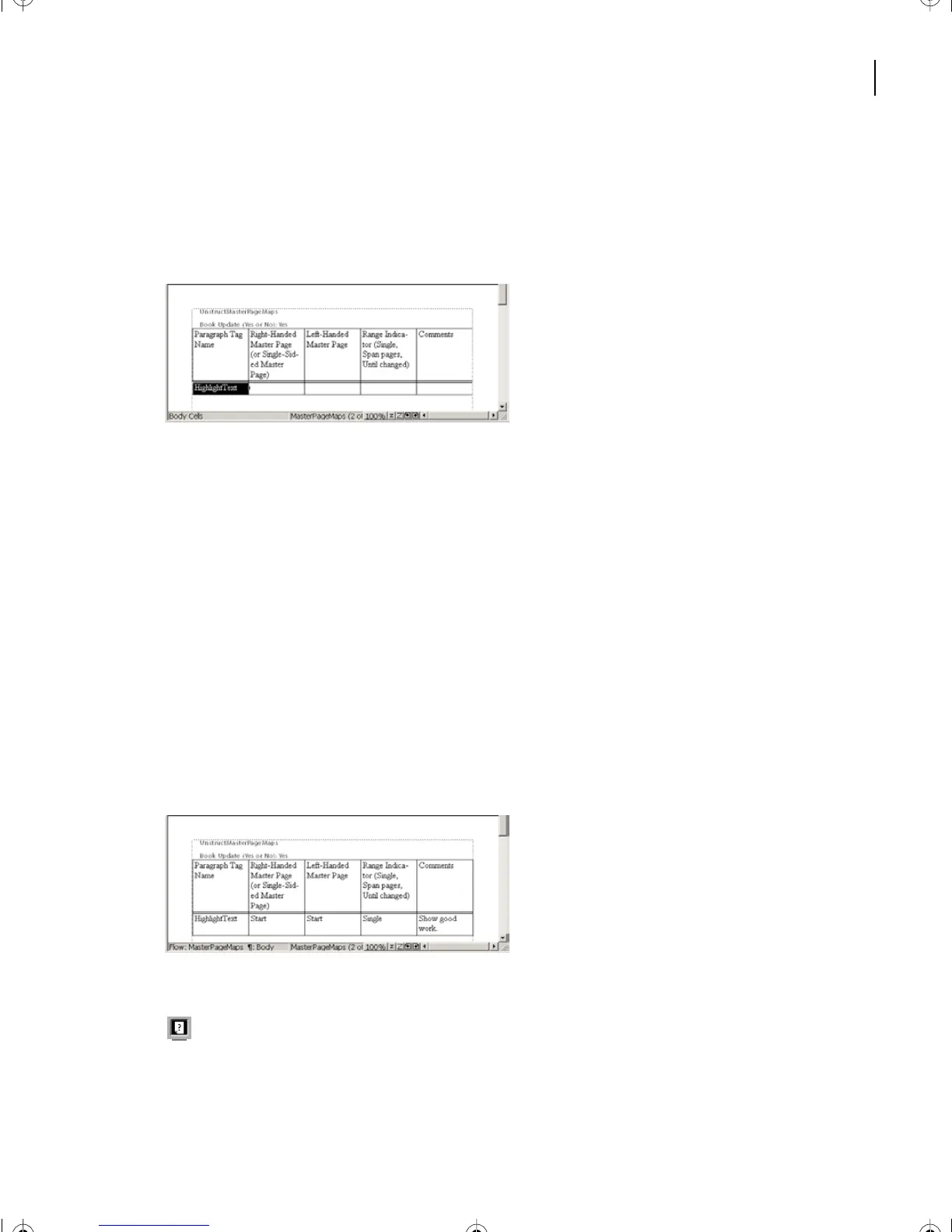 body page on which each paragraph tag appears. If this cell is blank, master pages are