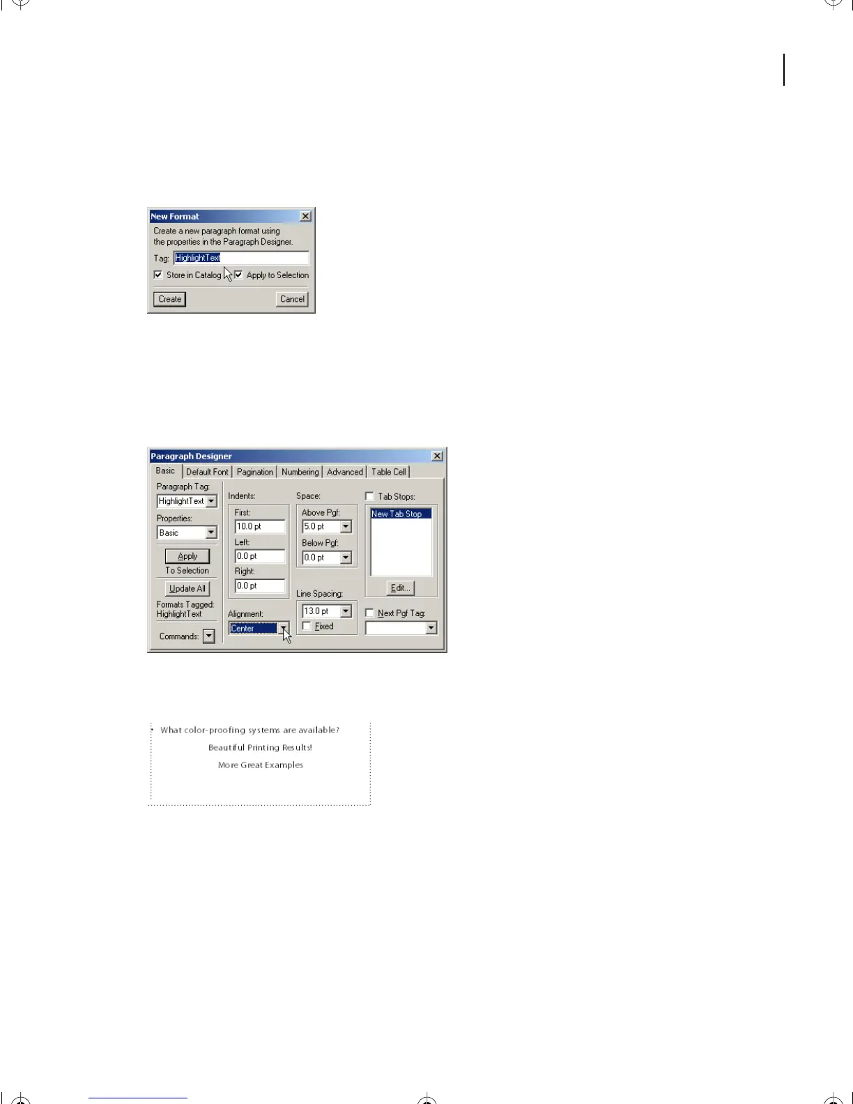 7 In the Paragraph Designer Properties > Basic, make the Alignment Center.
