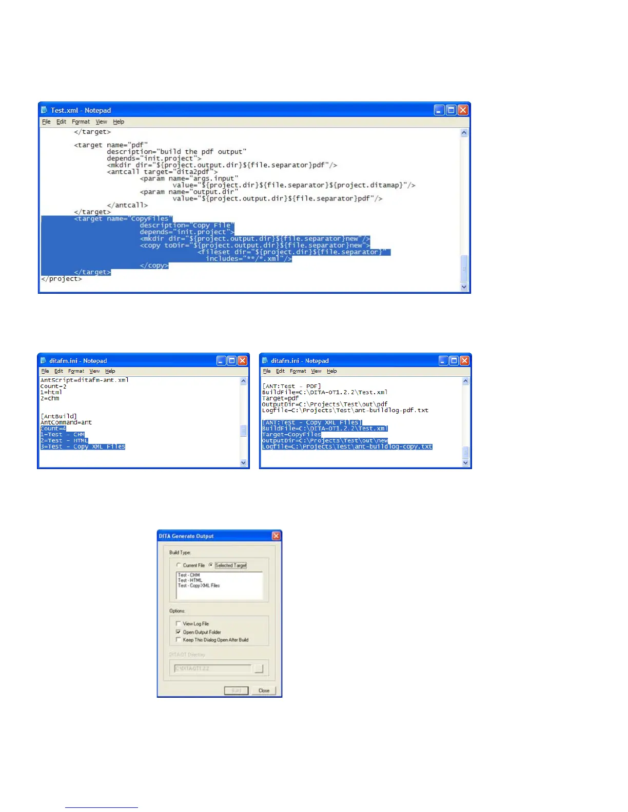 When the ditafm.ini file is updated, the new form of output is listed as a target in the DITA Gener-