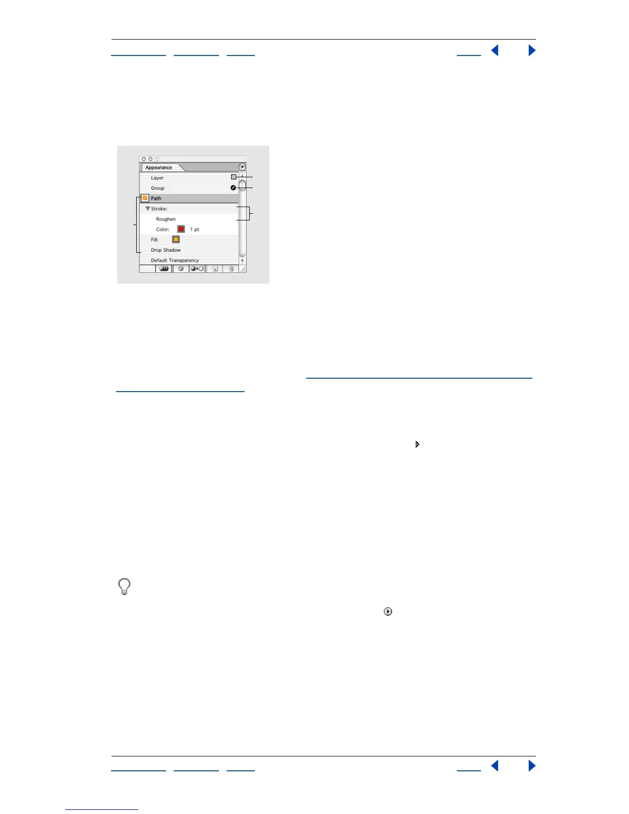 Displaying the Appearance palette Choose Window > Appearance.