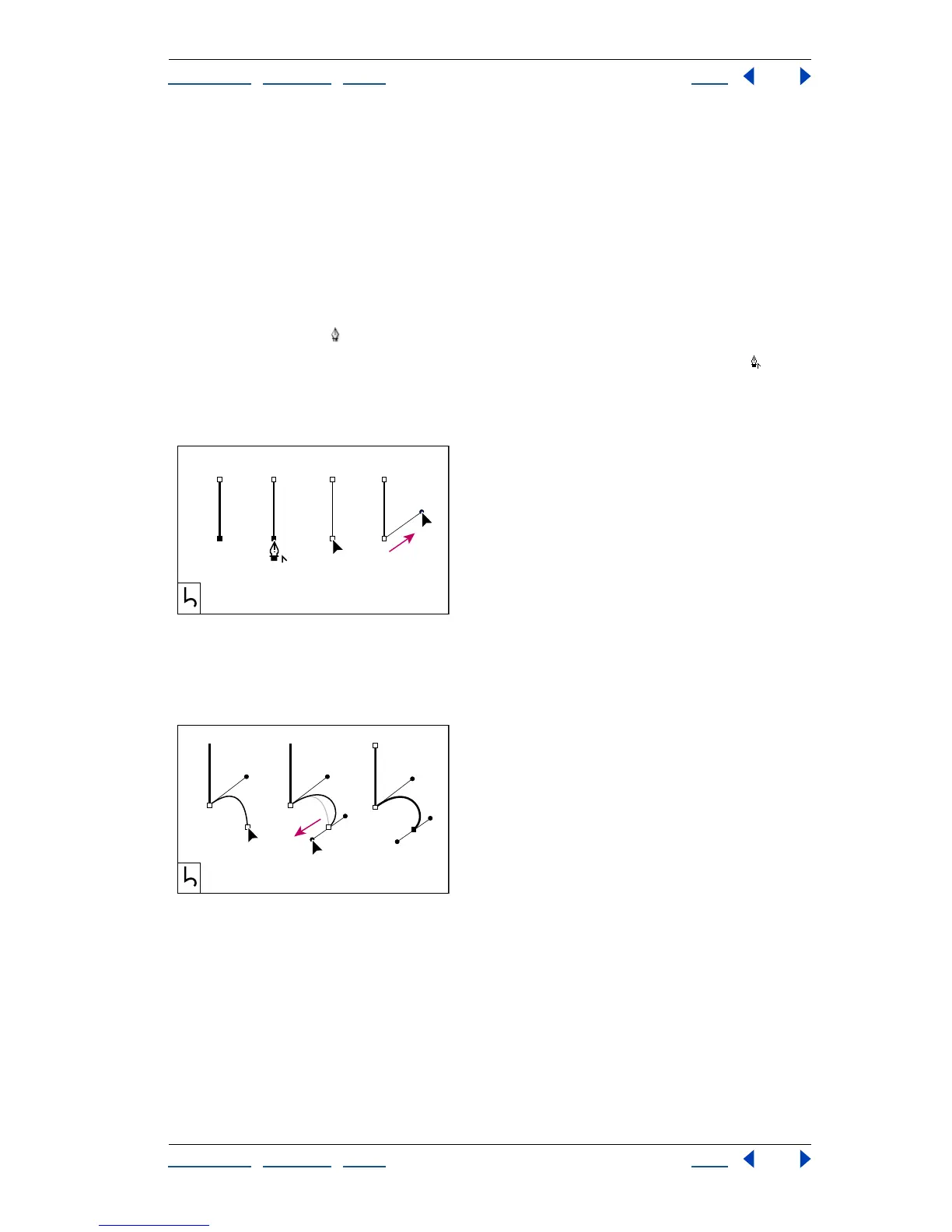 A. Holding pen tool down B. Dragging direction point C. New curve segment completed