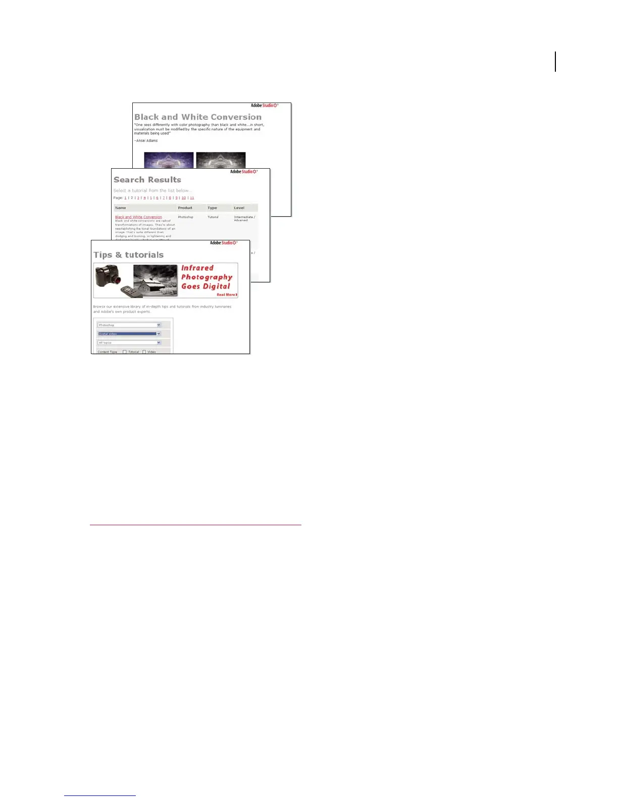 • Visit the Training area of the Adobe website for access to Adobe Press books; online, video, and instructor-led