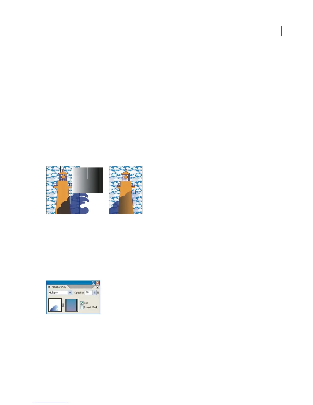 move a masking object, the masked artwork doesn’t move. You can unlink the mask in the Transparency palette to