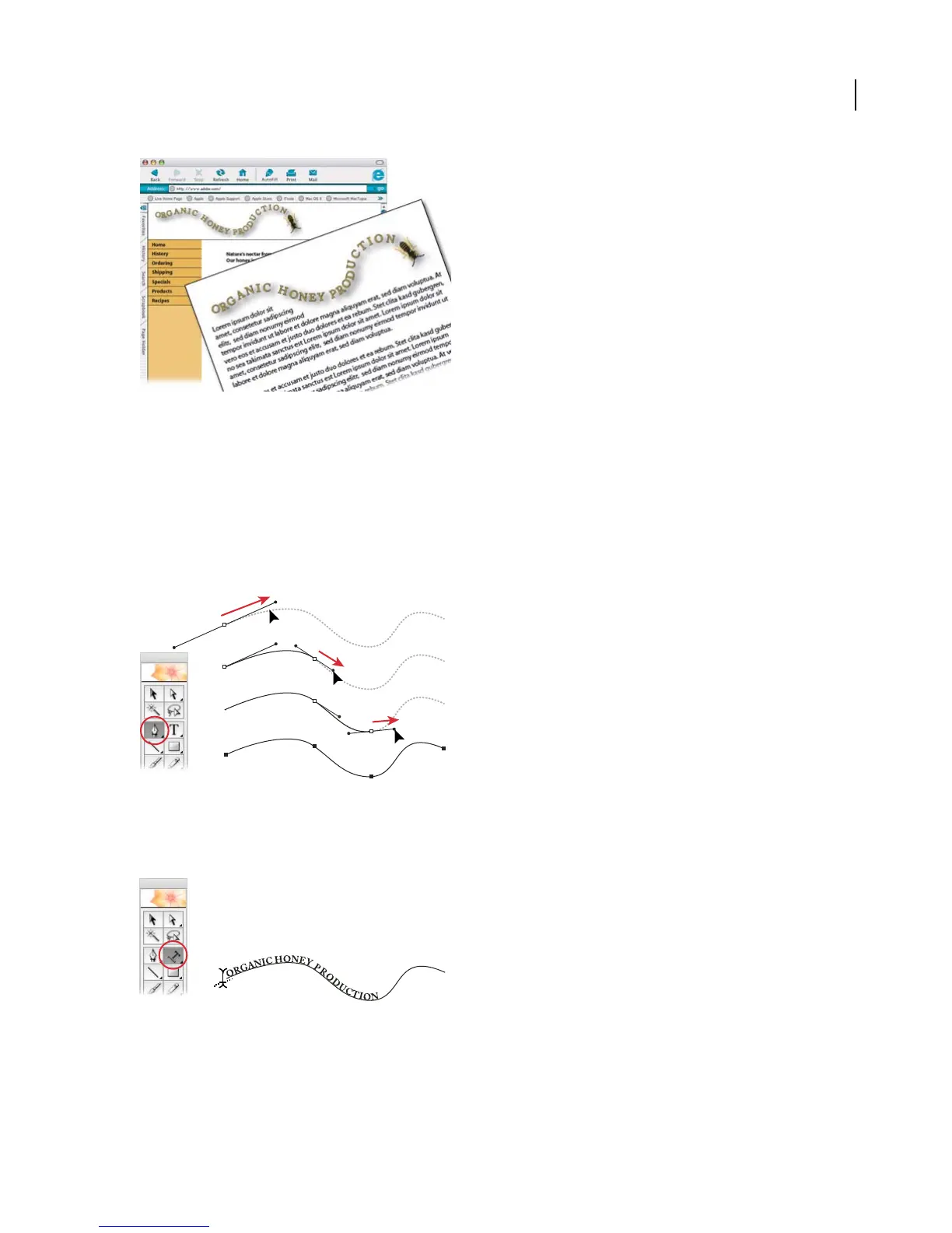 want the curve to go. Release the mouse button and move the pointer; then click and drag again in the direction you