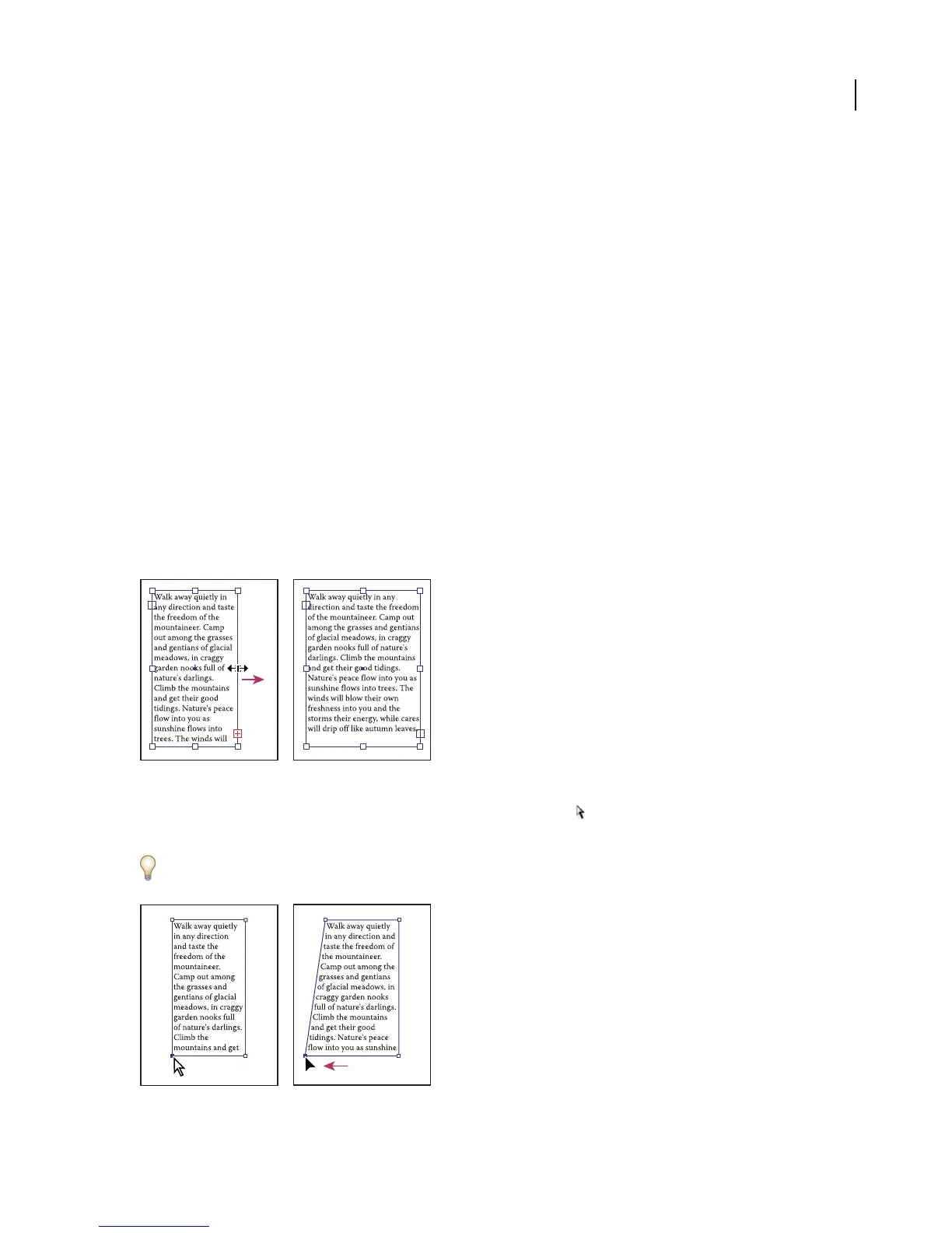 Resizing a type area with the Direct Selection tool