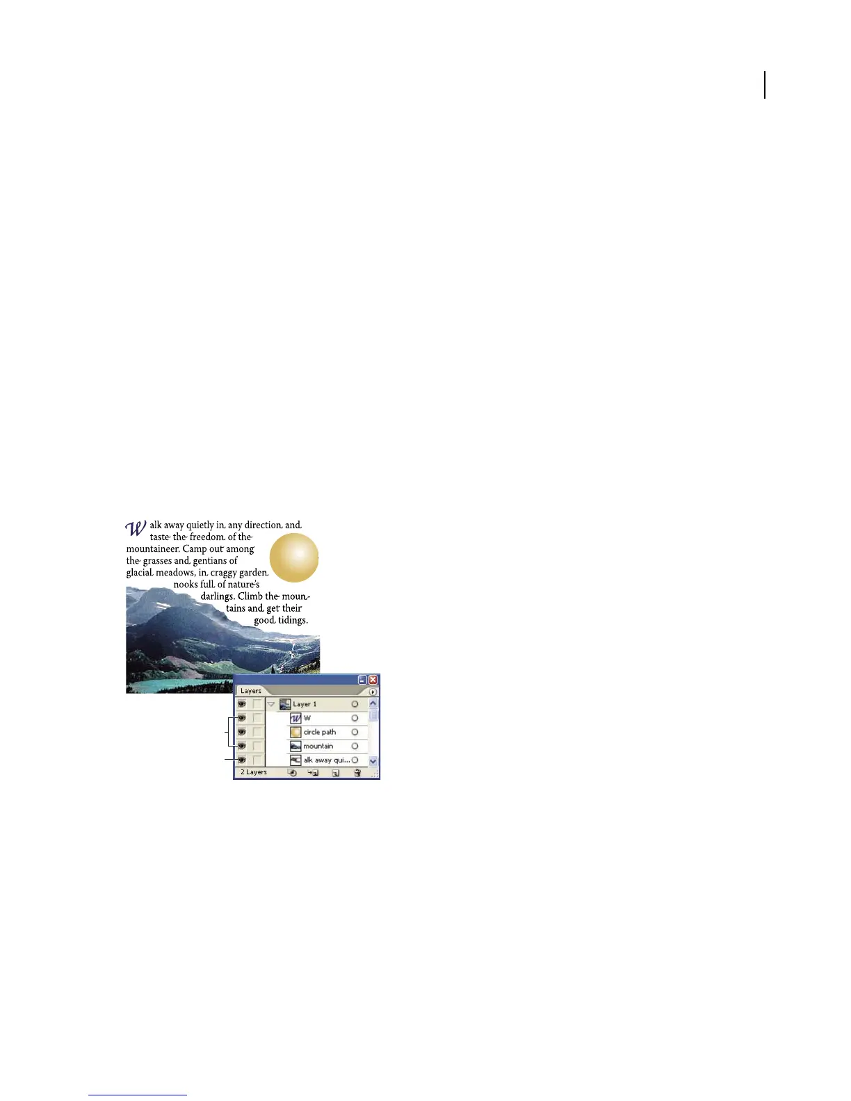2 In the Layers palette, make sure that the wrap object is above the text you want to wrap around it.
