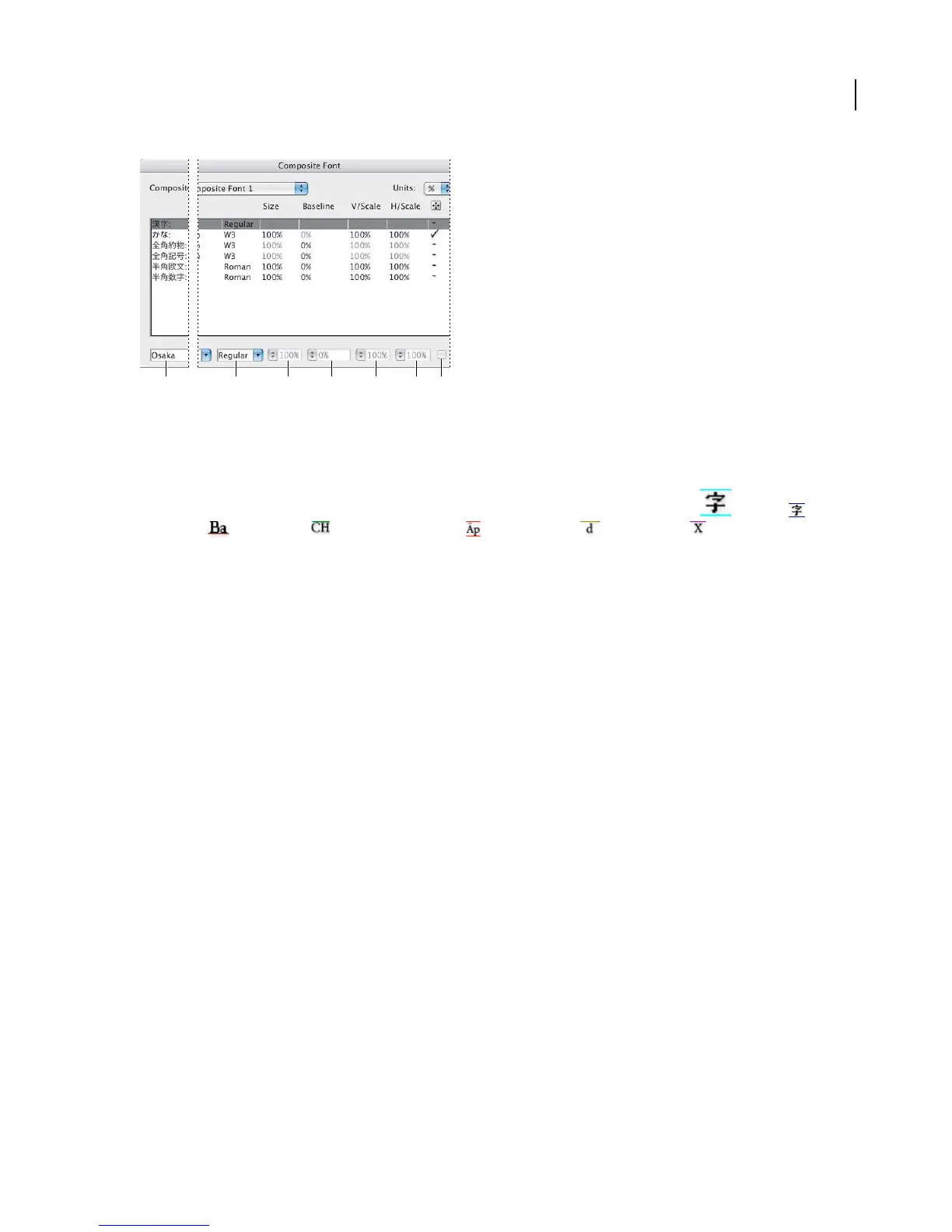 Kanji The base font of the composite font. The size and baseline for other characters are set according to the sizes