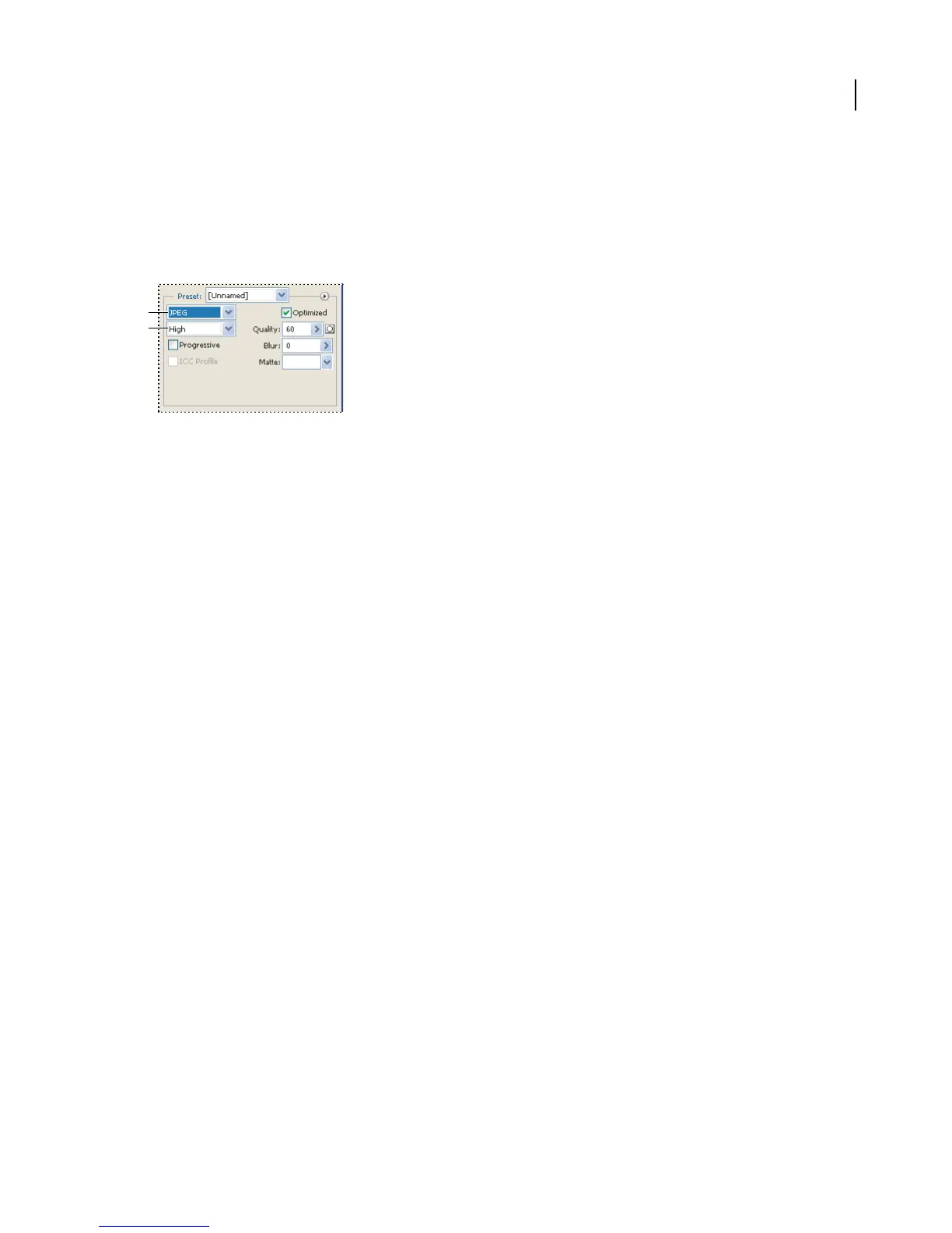 Transparency and Matte Determines how transparent pixels in the image are optimized. (See “To optimize trans-
