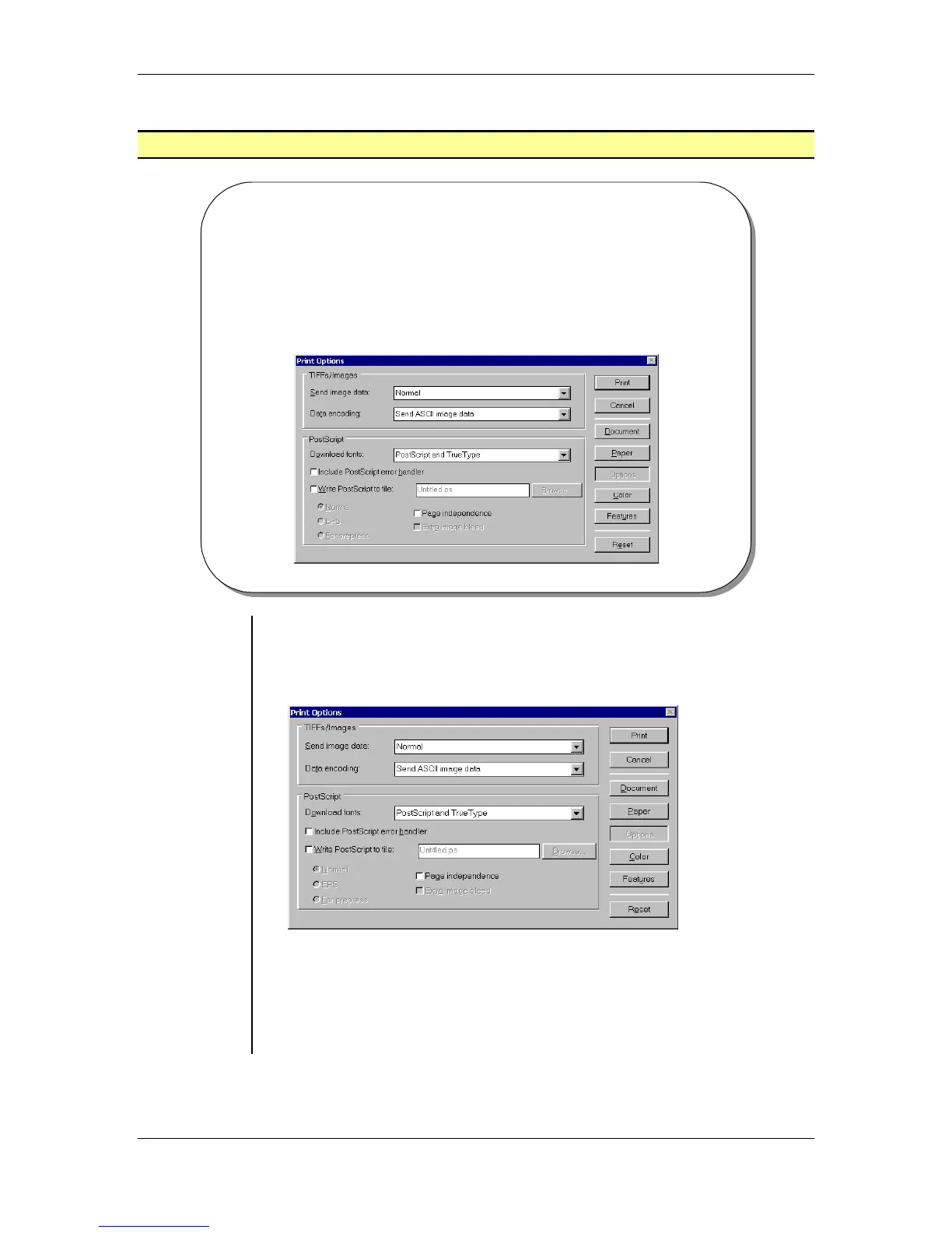 • The Print Options dialog box allows you to setup how