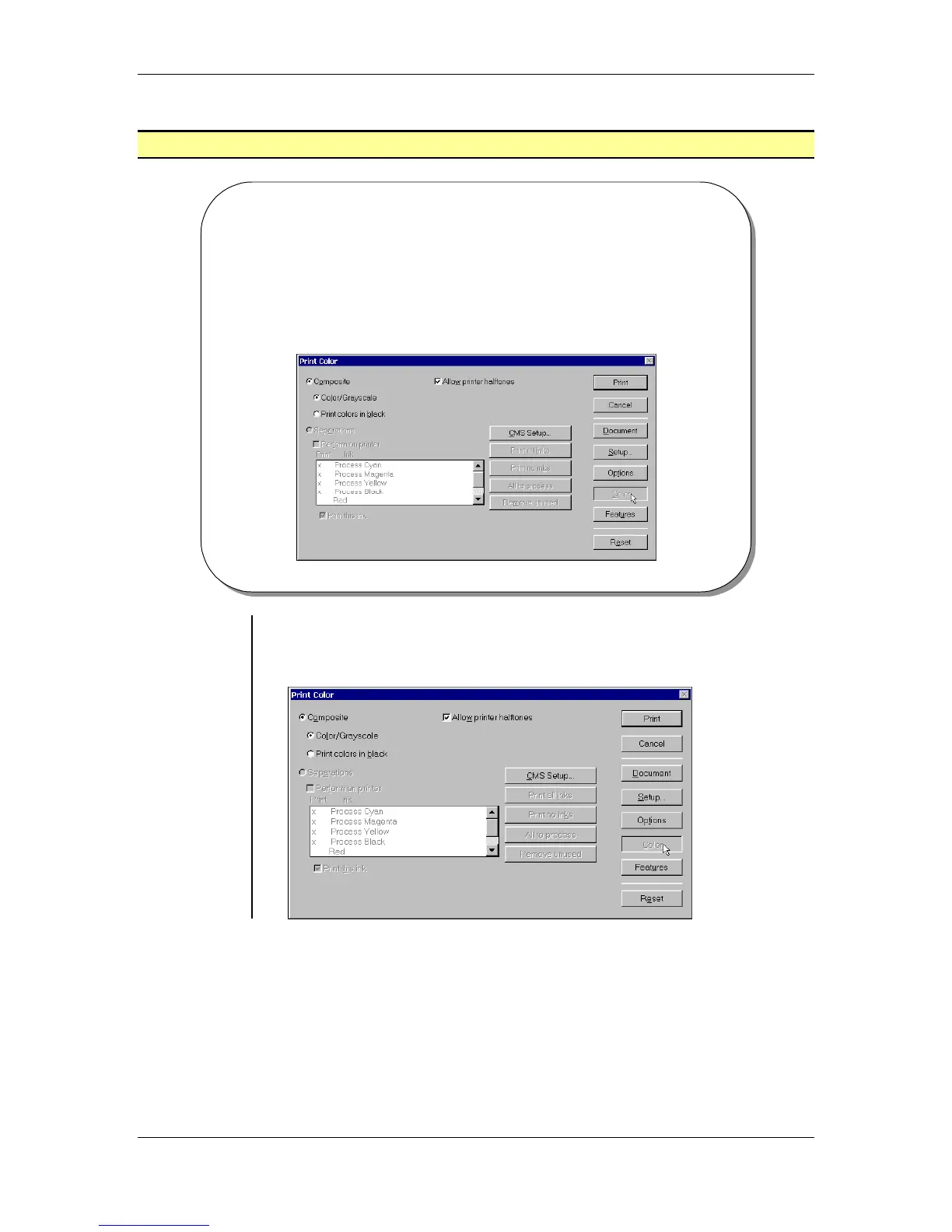 • The Print Color dialog box allows you to setup how the
