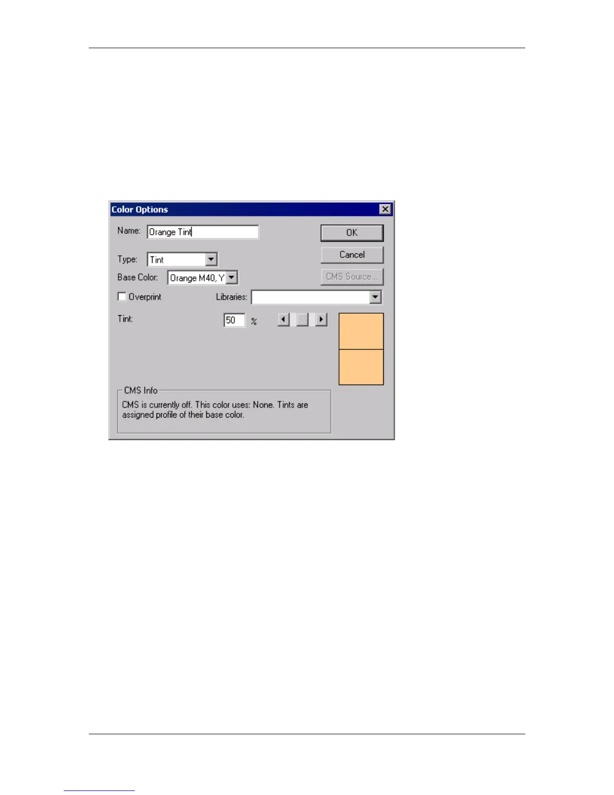 • Select the Orange M40, Y80 color from the colors palette list.