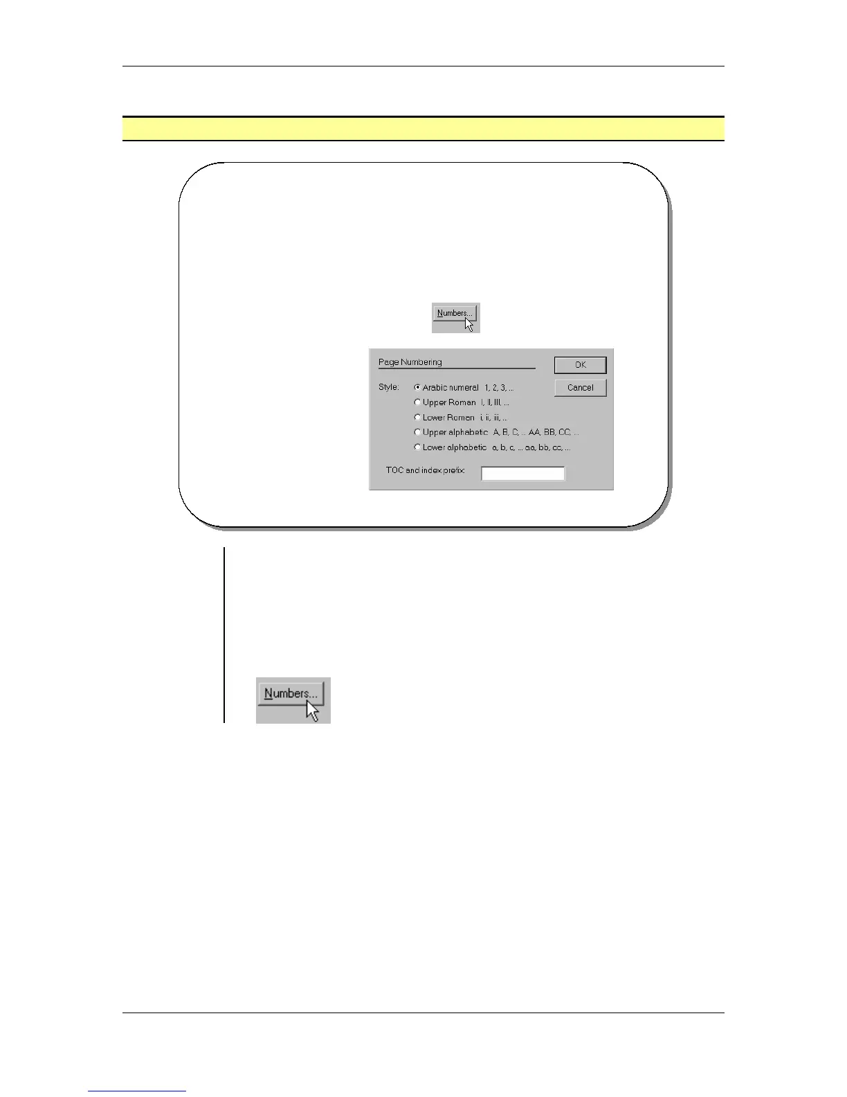 • Click the Numbers button in the Document Setup dialog box: